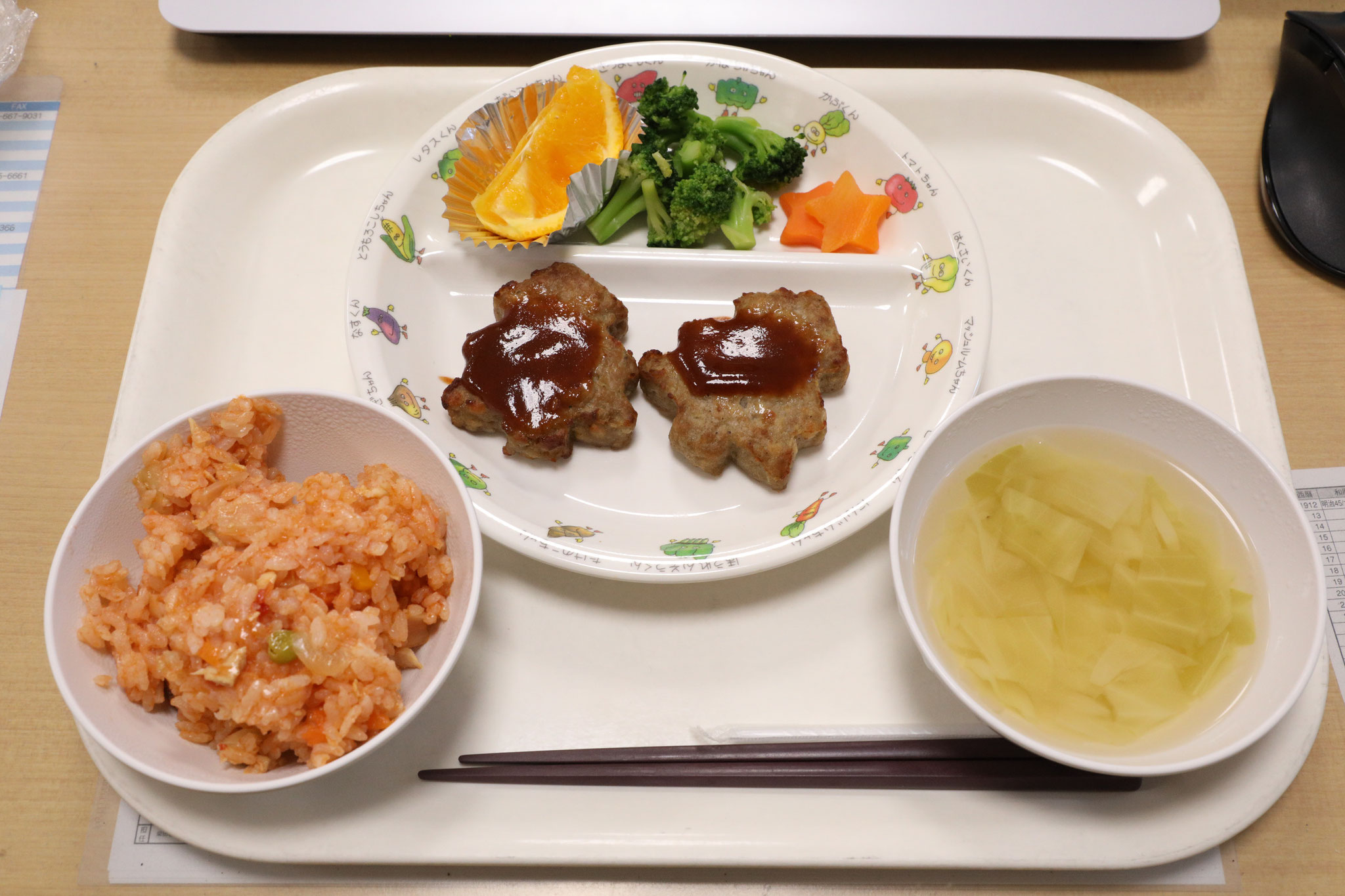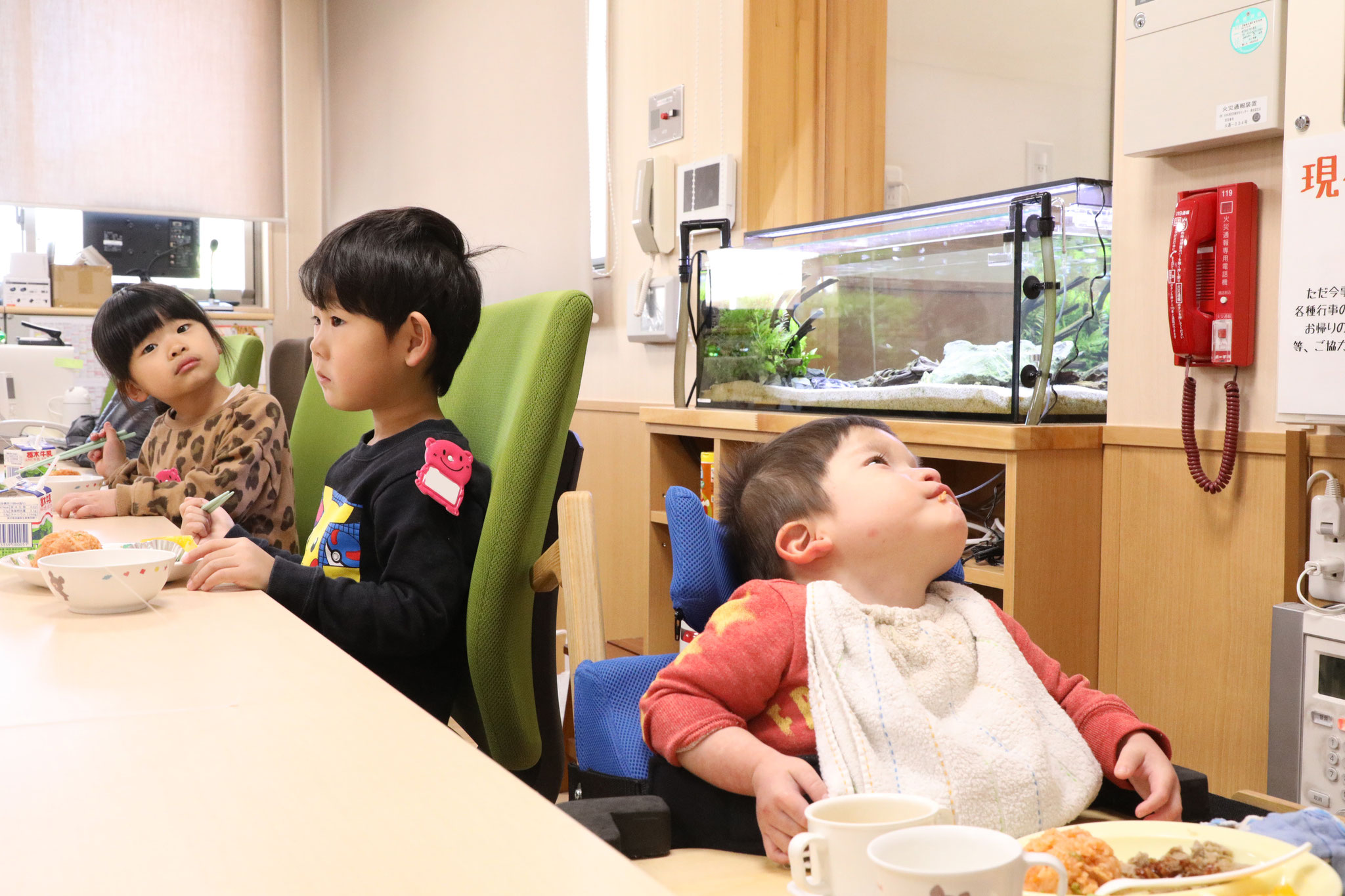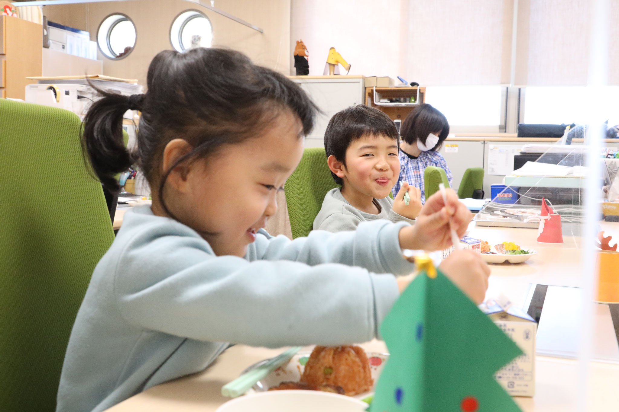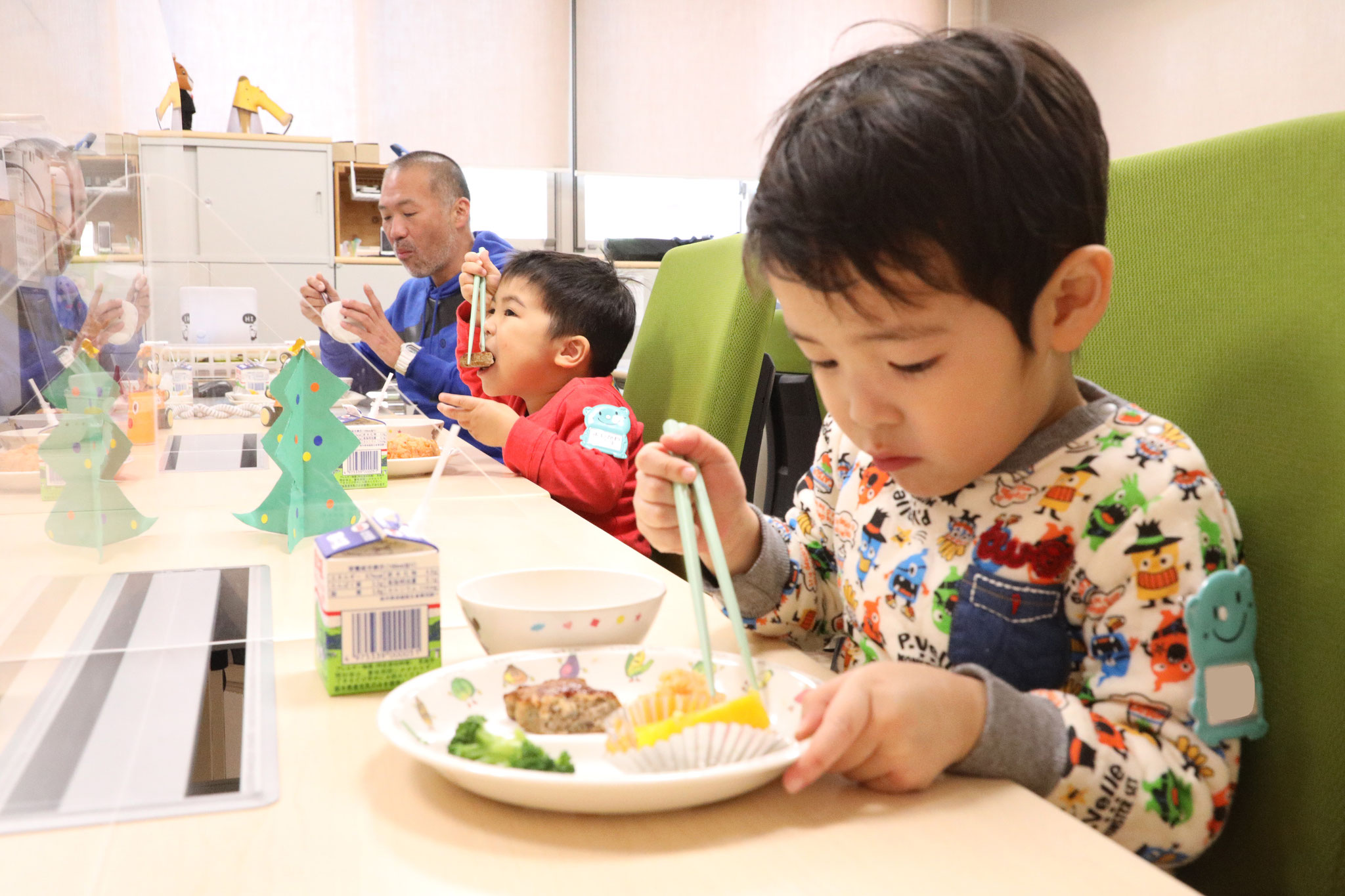 2020/12/23 誕生日会食会を行いました 今日は毎月恒例になっています誕生日会食会でした。今月お誕生日を迎えたちゅうりっぷ、たんぽぽ、すみれ組(3、4、5歳クラス)のお友達は総勢9名、にぎやかな会となりました。まずは、みんなの自己紹介から始まり、会食スタートです。今回はクリスマススペシャルメニュー、人気のチキンライスやハンバーグです。でも、食べる以上にお話が尽きない様子でした。 tagPlaceholderカテゴリ: