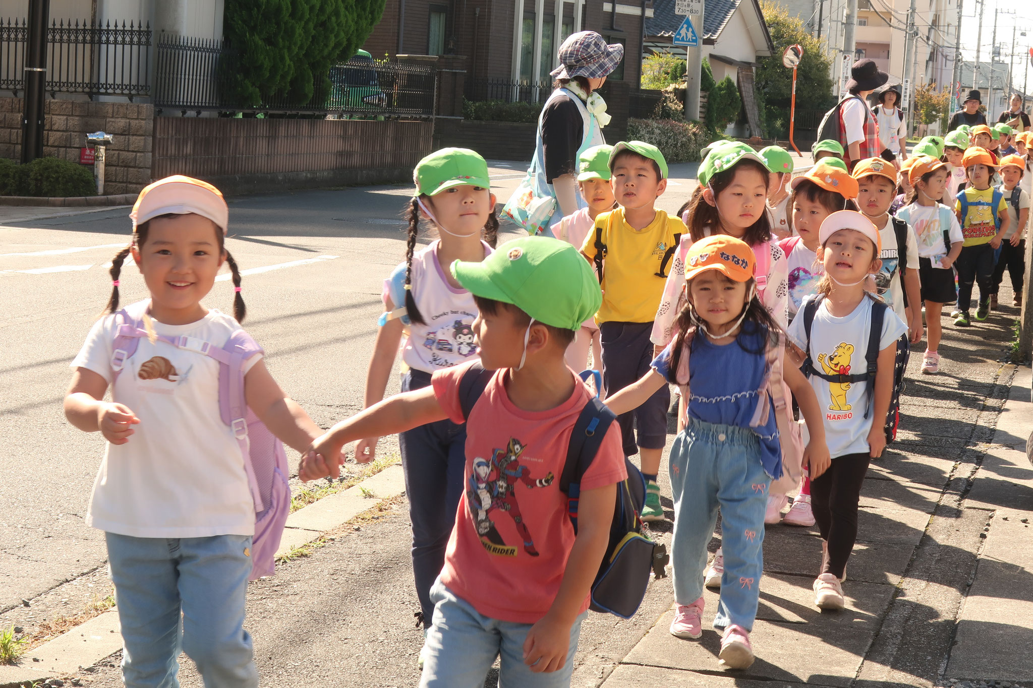 2025/10/10 園外散歩を行いました 今日はいつもよりちょっとだけ冒険する園外散歩でした。それぞれお弁当を持って出発です。ついた公園で太陽のもと、元気いっぱい遊んだ後は、お昼タイム。ふだんと違う場所でのお昼は、お弁当ということもあり、美味しく食べられました。 tagPlaceholderカテゴリ: