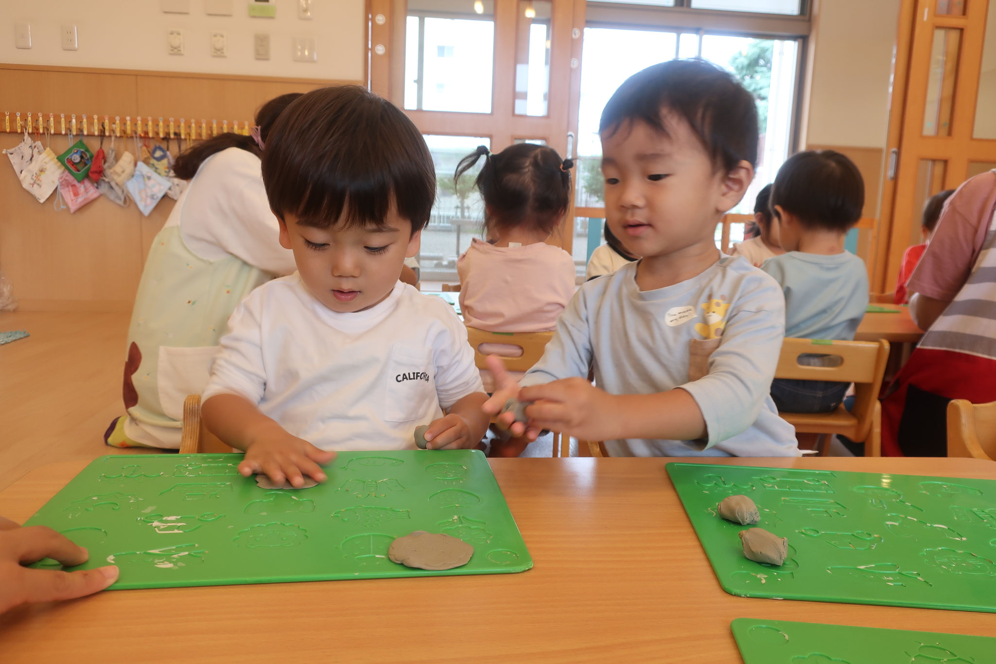 2025/10/24 つくし組クラス便り 今回はつくし組からです。 室内遊びの様子です。 保育園での粘土遊びは 今月からが始めてです。 粘土の感触を思う存分楽しみ、 コロコロしてみたり、 ちぎってみたり、 型にペタっとしてみたり 色んな遊びをしています。 今度はどんな風にして遊ぶのか 楽しみです。 (柳内) tagPlaceholderカテゴリ: