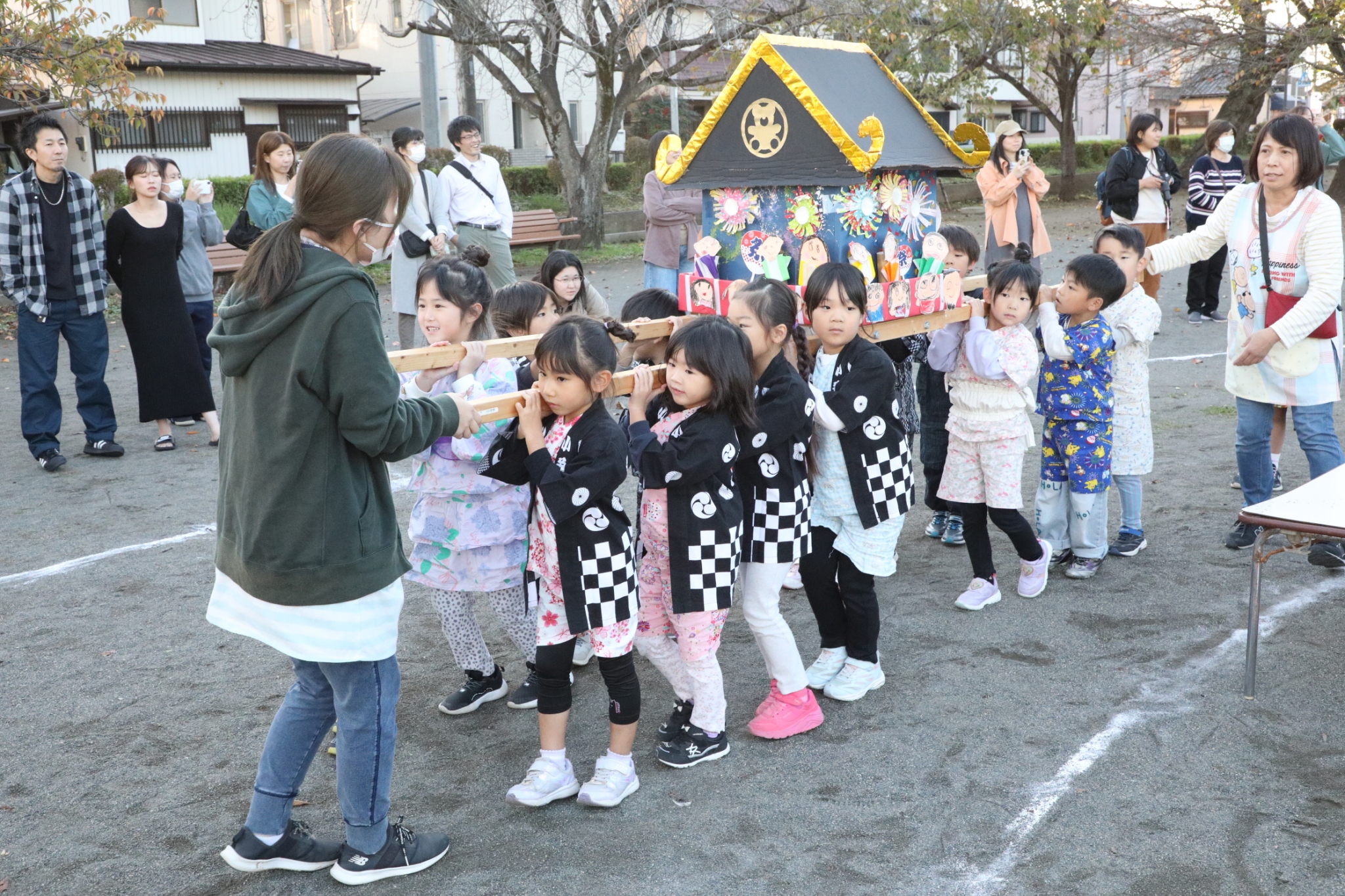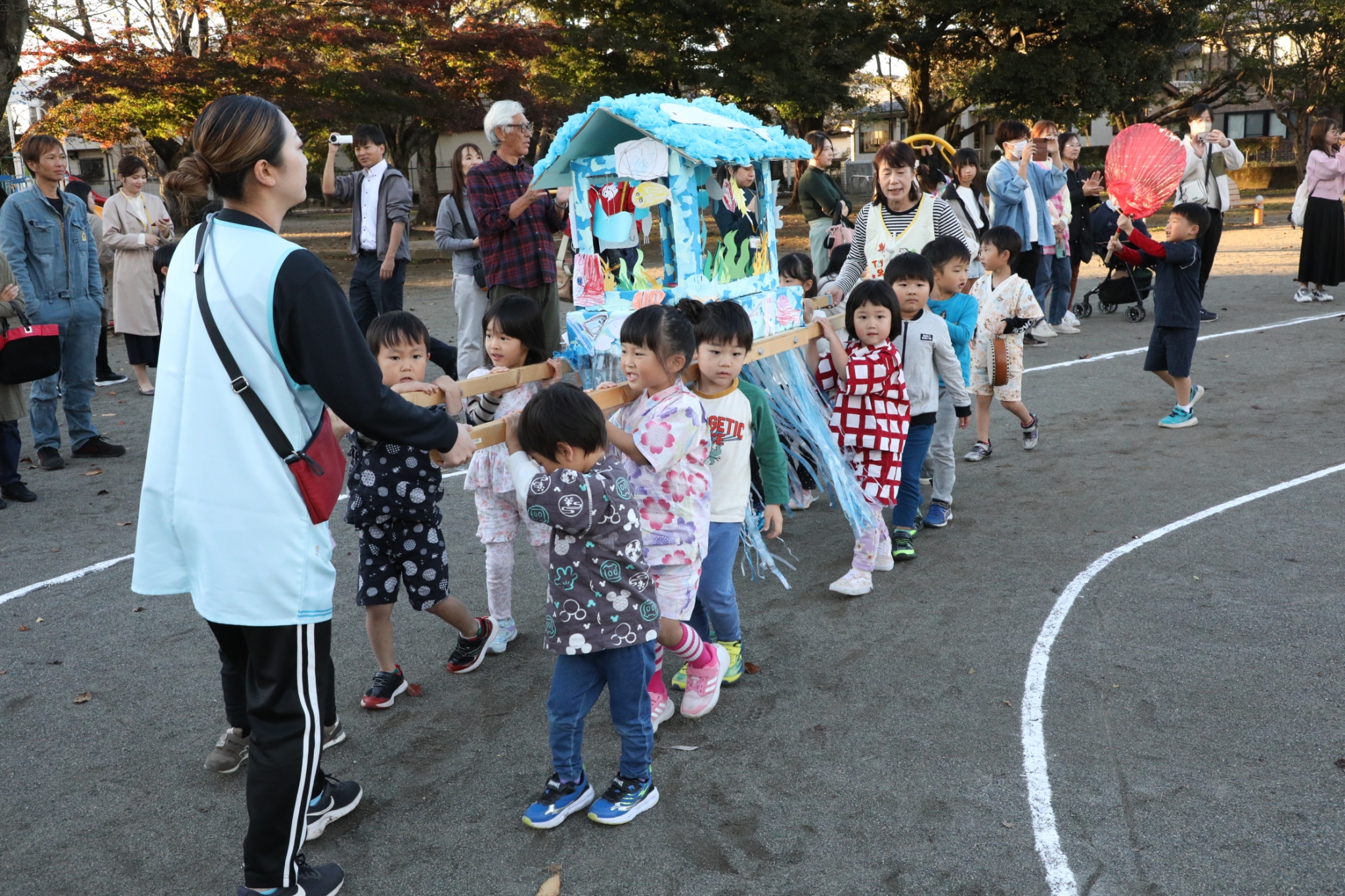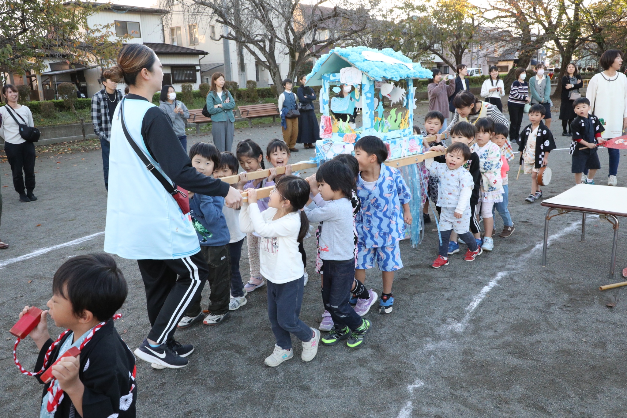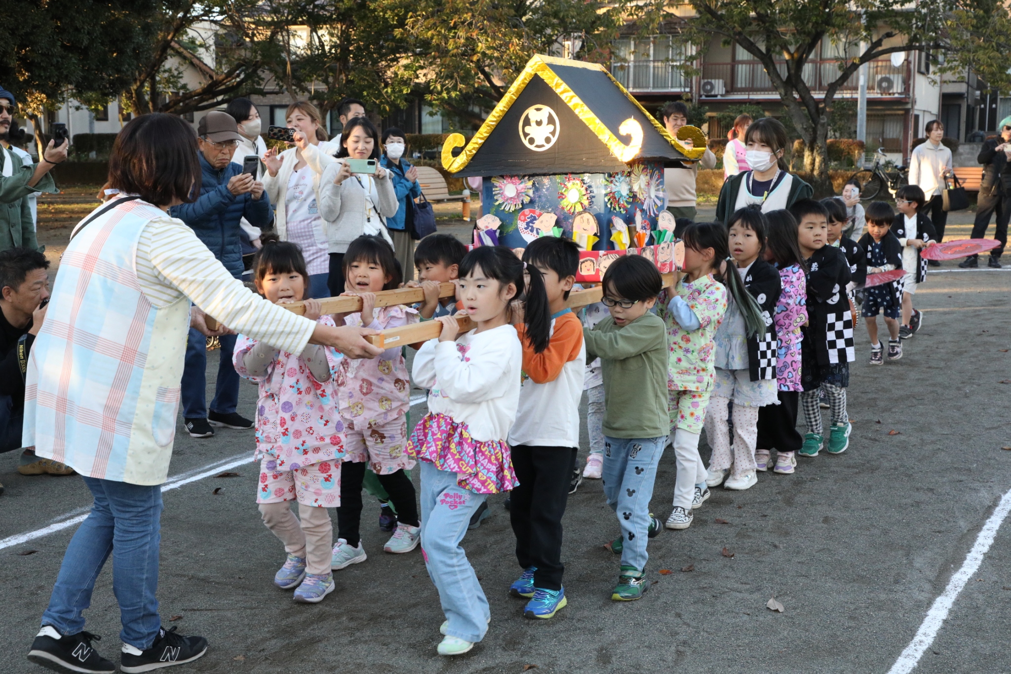 2025/10/28 お神輿練り歩き&盆踊りを行いました 先日行われた秋祭りであいにくの天気のため延期となっていた練り歩きと盆踊り、お待たせしましたが本日実施となりました。子どもたちがそれぞれ工夫を凝らしたお神輿で威勢よく練り歩きました。そして盆踊りでは楽しい音楽にあわせてイキイキと踊れてたようです。ご協力いただきました保護者の皆様には感謝申し上げます。 tagPlaceholderカテゴリ: